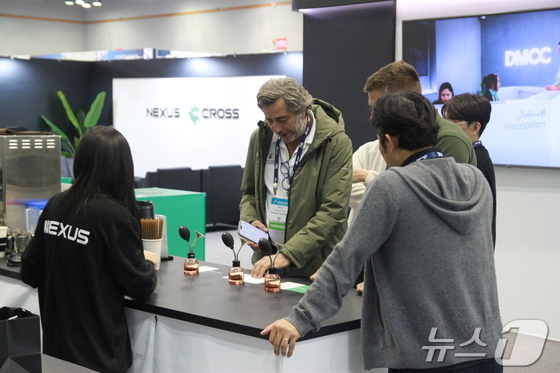 부산 벡스코 제2전시관에 위치한 넥써쓰 BTB기업 간 거래 부스를 찾은 방문객들이 커피를 주문하고 있다.2025.11.14/뉴스1 News…