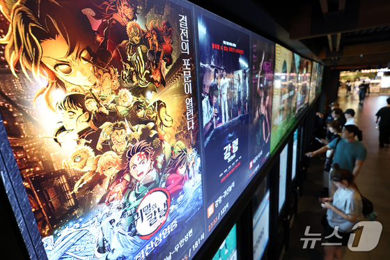 애니메이션 영화 '극장판 귀멸의 칼날: 무한성편'의 흥행이 이어지던 9월 8일 서울의 한 영화관을 찾은 관객이 키오스크를 통해 티켓을 출력하고 있다. 2025.9.8/뉴…