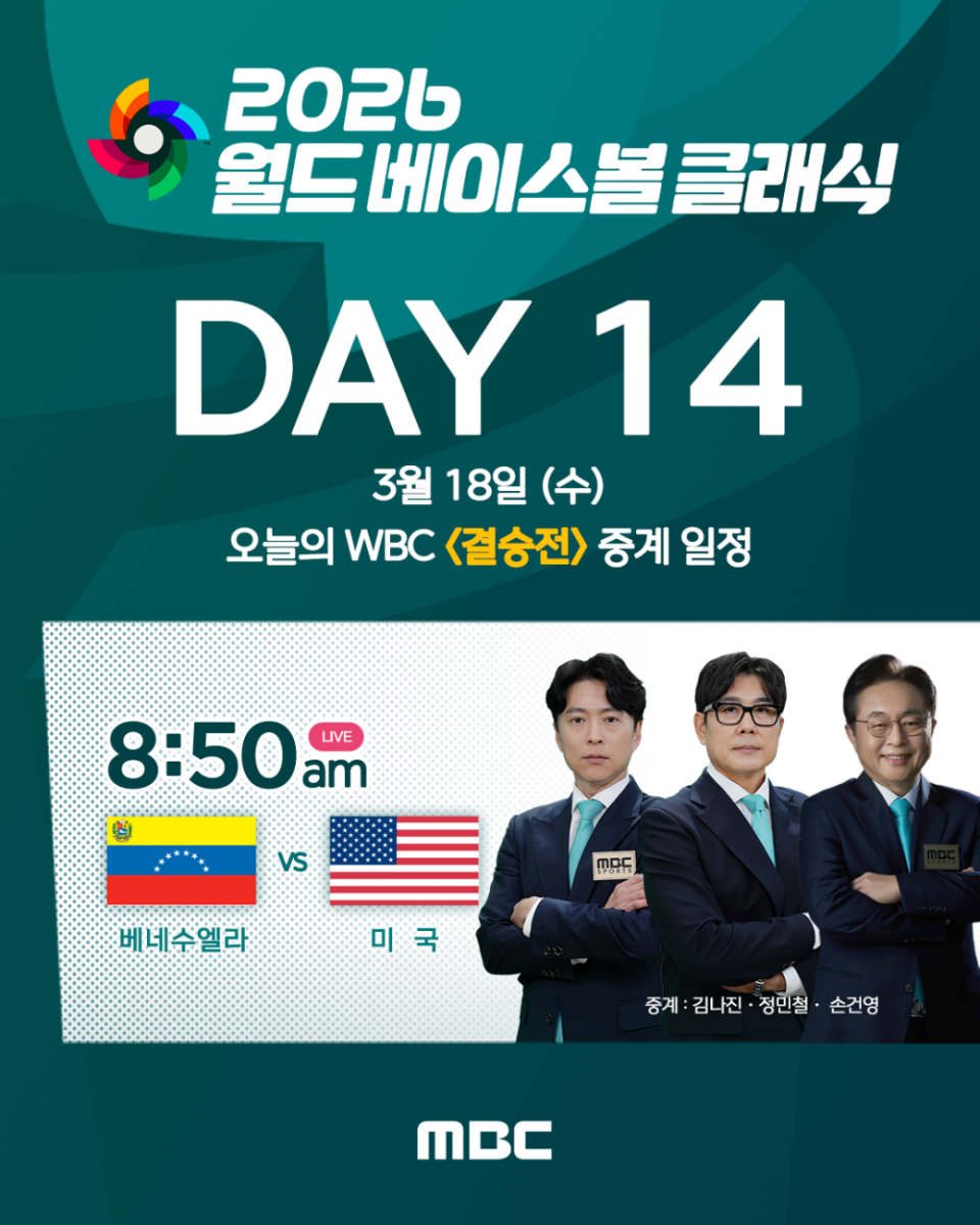 전 세계 야구팬들을 열광시킨 2026 월드 베이스볼 클래식(WBC)이 마침내 최후의 결전만을 남겨두고 있다. 스포츠 중계의 명가 MBC는 내일(18일) 오전 8시 50분부터 미국
