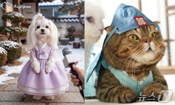 한복 입은 AI 강아지와 고양이한국반려동물영양연구소, 크집사 영상 갈무리 뉴스1세배 하는 강아지한국반려동물영…