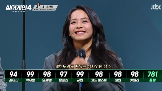 JTBC '싱어게인4' 캡처도라도가 자유곡 심사위원 평가 1위에 올라섰다.6일 오후 방송된 JTBC 예능 프로그램 '싱어게인4'에서는 최종 우승자를 가릴 파이널 …