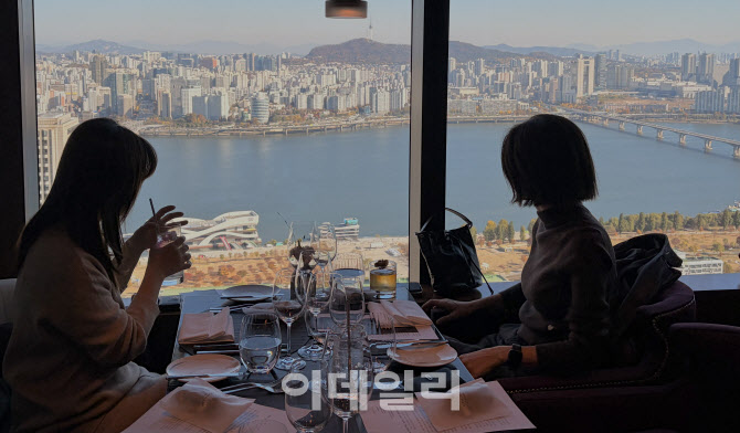 여의도 콘래드 서울 37층 ‘SUT. 더 붓처스 엣지’(The Butcher‘s Edge)에서 바라본 한강 (사진=이민하 기자) [이데일리 이민하 기자] “SUT은 단순한 스테이크