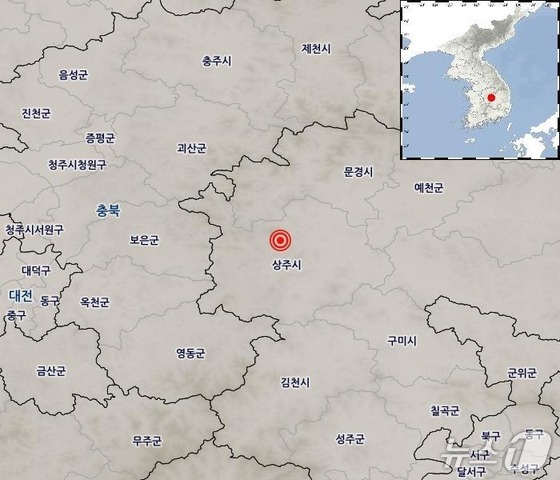 경북 상주시 북서쪽 13㎞ 지역서 규모 2.3 지진