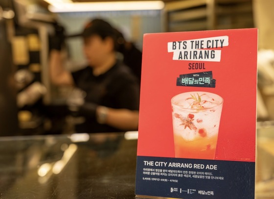 우아한형제들 제공배달의민족 운영사 우아한형제들은 'BTS 더 시티 아리랑 서울'과 연계한 한정판 음료 '더 시티 아리랑 레드 에이드'를 소규모 …