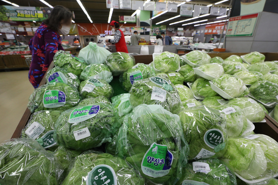 서울의 한 대형마트에서 시민들이 양상추를 고르고 있다. 2022.9.18/뉴스1 News1 신웅수 기자햄버거·샌드위치 프랜차이즈 업계에 양상추 수급 …
