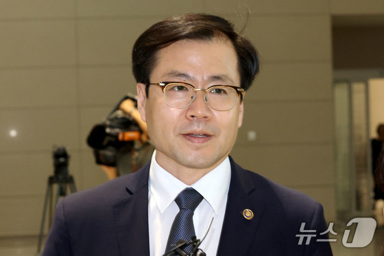허민 국가유산청장이 17일 오전 서울 종로구 국립고궁박물관에서 유네스코 세계유산 '종묘' 앞 세운재정비촉진계획 관련 입장을 밝힌 뒤 취재진 질문에 답하고 있다. 2025…