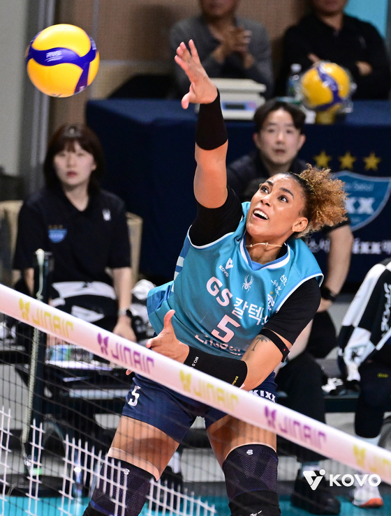 GS칼텍스 실바. KOVO 제공여자프로배구 GS칼텍스가 풀세트 접전 끝에 흥국생명을 꺾고 3위 싸움에 불을 지폈다.GS칼텍스는 27일 서울 장충…