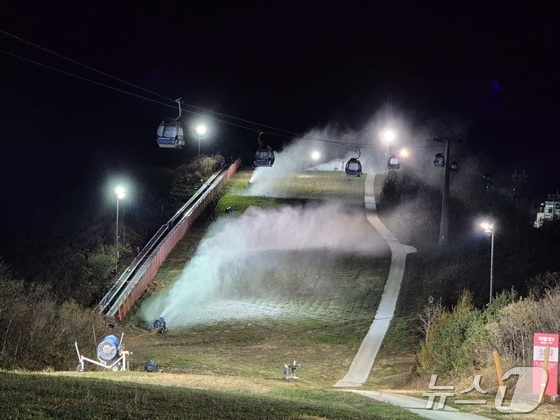 "초겨울 눈발이 분다"…하이원리조트, 스키장 제설작업 시작