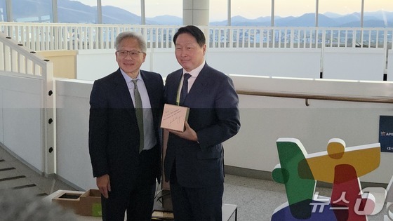젠슨 황, 깐부회동 이어 최태원과 면담…친필 서명 컴퓨터 선물도