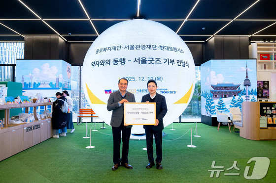 저소득 아동·청소년 가족 여행 지원 사업 추진을 위해 전달식에 참여한 김중환 사무국장 종로복지재단왼쪽과 원종 서울관광재단 국제관광·MICE 본부장…