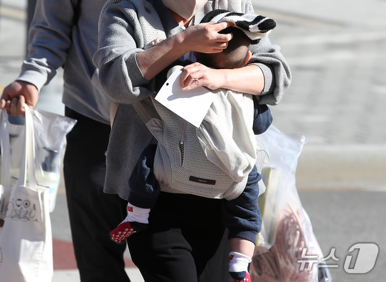 엄마가 찬바람을 가리기 위해 아기에게 털모자를 씌워주고 있다. 2025.12.4/뉴스1 News1 공정식 기자건설업과 제조업 등 일부 산업의 육아휴직…