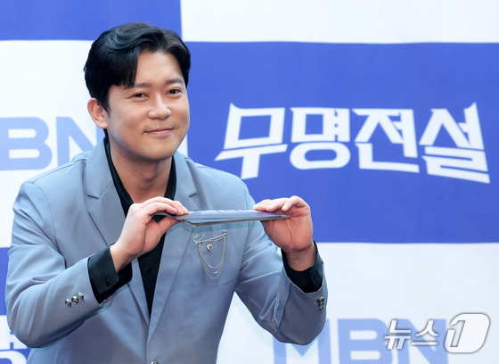 MC 김대호가 25일 서울 마포구 스탠포드호텔에서 열린 MBN 트롯 오디션 '무명전설-트롯 사내들의 서열전쟁'은 제작발표회에서 포즈를 취하고 있다. '무명전설'은 99인…