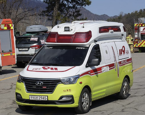 [이데일리 채나연 기자] 경북 경주시 한 아연가공업체의 정화조 내부에서 작업하던 근로자들이 질식으로 쓰러져 2명이 숨지고 2명이 중태에 빠졌다. 구급차. (사진=연합뉴스) 소방당국