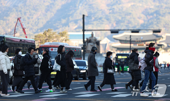 설 연휴가 끝난 19일 서울 종로구 광화문네거리에서 직장인들이 출근길 발걸음을 옮기고 있다. 2026.2.19 뉴스1 김도우 기자이번 주말은 토요일인…