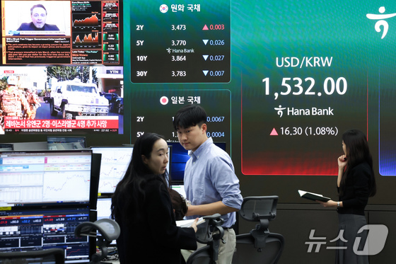 중동 긴장 고조가 이어지는 31일 오후 서울 중구 하나은행 본점 딜링룸 전광판에 증시 시황이 표시되고 있다. 2026.3.31 뉴스1 임지훈 인턴기자…