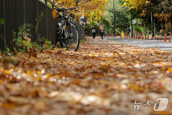 14일 서울 노원구 덕릉로 일대에서 시민들이 떨어지는 낙엽을 밟으며 가을 풍광을 즐기고 있다. 2025.11.14/뉴스1 News1 권현진 기자일요일…