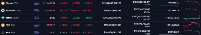 미중 긴장 고조에 가상자산 휘청···비트코인 11만 3000달러대 급락