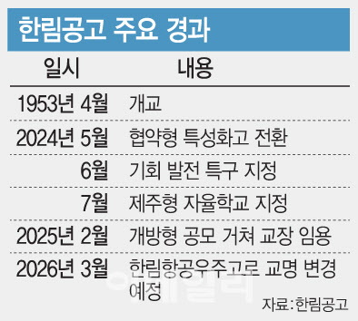 [제주=이데일리 강민구 기자] 국산 로켓 누리호 발사 성공으로 민간우주 시대가 본격화하는 가운데 우주·항공 분야 실무 인재를 양성하는 항공우주 협약형 특성화 고등학교가 내년부터 본