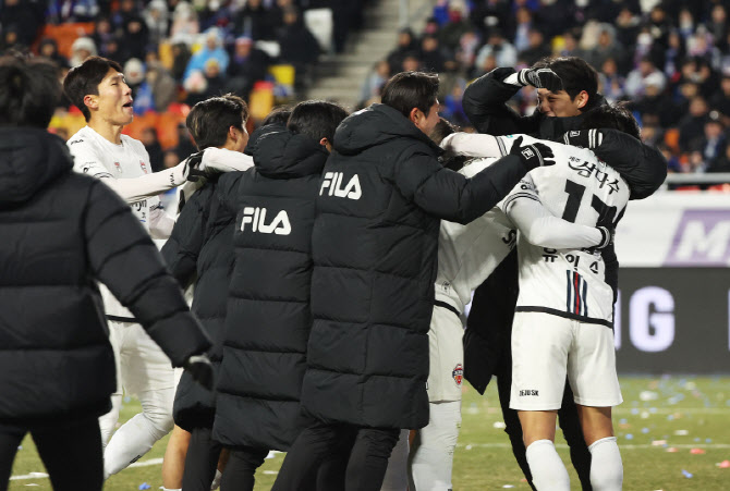 [수원=이데일리 스타in 허윤수 기자] 프로축구 K리그1 제주SK가 외나무다리 승부에서 먼저 1승을 챙겼다. 3일 경기도 수원월드컵경기장에서 열린 K리그 승강 플레이오프 1차전 수