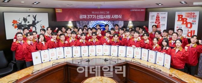 [이데일리 신수정 기자] 제너시스BBQ 그룹이 글로벌 확장을 이끌 신입사원들과 함께 도약을 선언했다. 국내 최대 치킨 프랜차이즈 제너시스BBQ가 공채 37기 신입사원 사령식을 개최