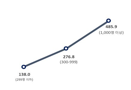 기업 규모별 노동생산성 추이 단위: 백만원 자료제공 = 대한상공회의소중소기업에서 중견기업이 되면 생산성이 두 배로, 대기업이 …