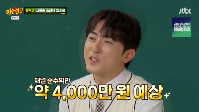 방송 시청 후 작성된 리뷰 기사입니다. [OSEN=박하영 기자] ‘아는 형님’ 김원훈, 조진세, 엄지윤이 ‘숏박스’ 순수익을 공개했다. 25일 방송된 JTBC 예능 ‘아는 형님’에