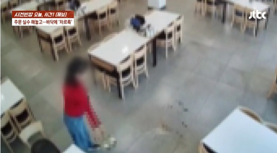 JTBC '사건반장' 갈무리식당에서 한 중년 손님이 주문 실수를 이유로 환불을 요구하며 음식을 바닥에 쏟으며 소란을 피웠다는 제보가 전해졌다.5…