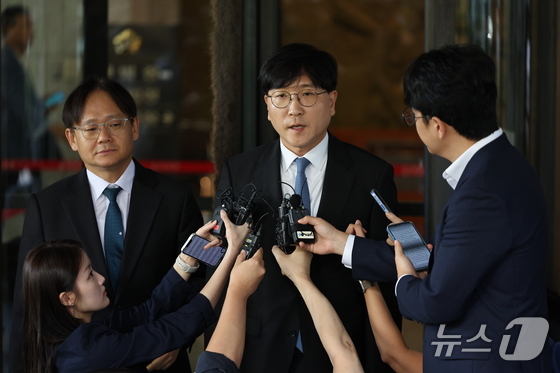 최태원 SK 회장 측 이재근 변호사가 일 오전 서울 서초동 대법원에서 파기환송 결정에 대한 입장을 밝히고 있다. ../뉴스 News 박…