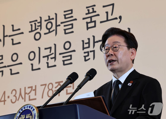 이재명 대통령이 29일 제주시의 한 호텔에서 열린 제주 4.3 희생자 유족과의 오찬에서 인사말을 하고 있다. 2026.3.29 뉴스1 이재명 기자◇청…