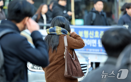 아침 기온이 전날보다 5~7도 가량 큰 폭으로 떨어져 추운 날씨를 보인 26일 오전 서울 종로구 광화문네거리에서 두터운 옷차림의 시민들이 발걸음을 옮기고 있다. 2025…