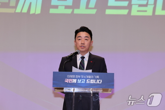 강훈식 대통령 비서실장이 7일 서울 용산 대통령실 청사에서 열린 '이재명 정부 출범 6개월 성과 간담회'에서 발언하고 있다. 2025.12.7/뉴스1 New…