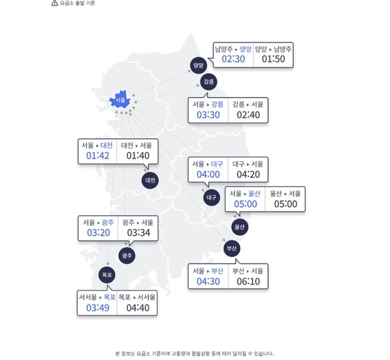 일 오전 시 기준 서울과 주요도시간 고속도로 예상 이동 시간한국도로공사 홈페이지 갈무리년 추석 황금연휴의 마지막날인 일 이른 시간부…