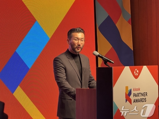 이준호 클룩 한국지사장이 지난 29일 서울 중구 신라호텔 영빈관 에메랄드홀에서 열린'2026 클룩 파트너스 어워드'에서 인사말을 하고 있다. News1 윤슬…