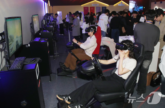 지난해 12월 26일 부산 해운대구 벡스코 컨벤션홀에서 열린 '2024 특성화 유니위크'에 참가한 대학생들이 가상현실VR 게임을 즐기고 있다. 첨단산업…