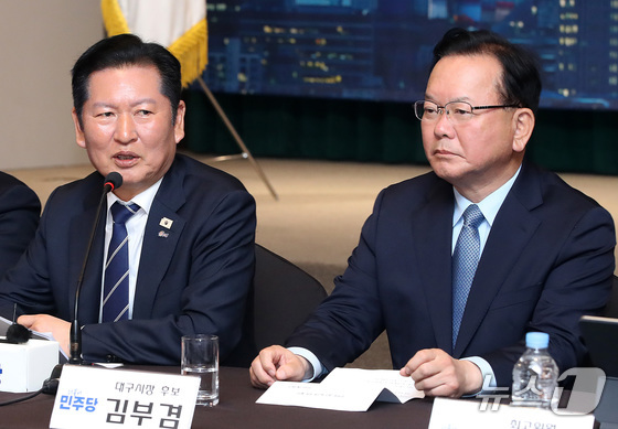 정청래 더불어민주당 대표가 8일 오전 대구 북구 인터불고 엑스코 호텔에서 열린 현장최고위원회의에서 모두발언을 하고 있다. 2026.4.8 뉴스1 공정식 기자…