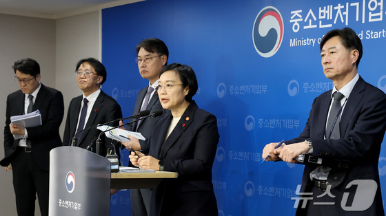 한성숙 중소벤처기업부 장관이 17일 오후 세종시 정부세종청사 중소벤처기업부 브리핑실에서 2026년 업무계획 내용을 설명하고 있다. 2025.12.17/뉴스1 …