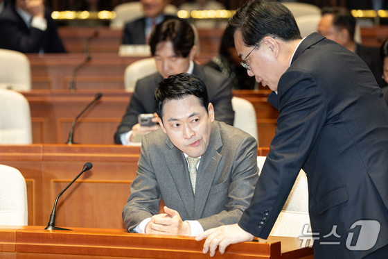 장동혁 국민의힘 대표가 19일 서울 여의도 국회에서 열린 의원총회에서 송언석 원내대표와 대화하고 있다. 뉴스1 이승배 기자송언석 국민의힘 원내대표는 …