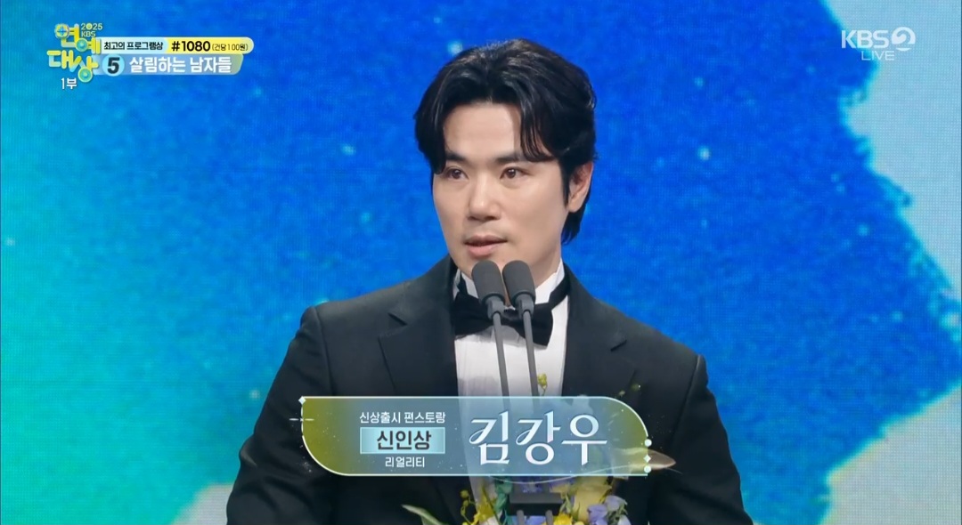 배우 김강우가 ‘2025 KBS 연예대상’ 신인상을 수상했다. 12월 20일 생방송으로 진행된 ‘2025 KBS 연예대상’에서는 올해 시청자들에게 즐거움을 선사한 예능인들과 함께