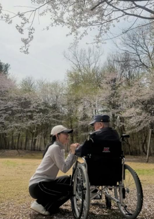 이영애, 휠체어 탄 父 옆 무릎 꿇었다..."부모님 계셔 더 따뜻한 문호리집"