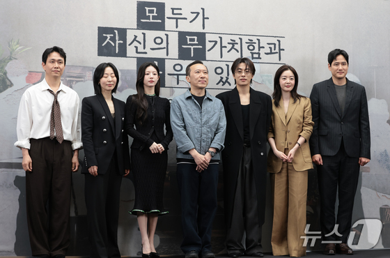 배우 오정세왼쪽부터와 강말금, 고윤정, 차영훈 감독, 구교환, 한선화, 박해준이 17일 서울 마포구 상암동 스탠포드 호텔에서 열린 JTBC 드라마 '모…