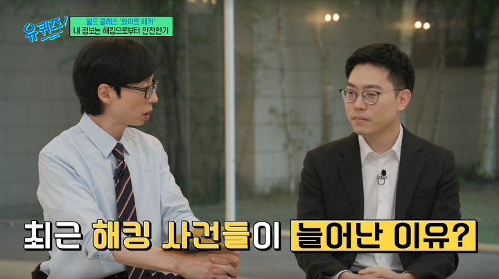 유재석이 통신사 해킹 사태 때 유심을 교체했다고 밝혔다. 15일 방송된 tvN '유퀴즈 온 더 블럭'에는 화이트 해커 박세준 자기님이 출연했다. 이날 박세준 자기님은 "사이버 보안