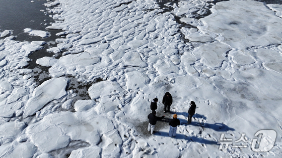 전국 곳곳에 한파특보가 발효돼 맹추위가 이어진 21일 인천 강화도 동막해변 일대가 얼어붙어 있다. 기상청에 따르면 전국 대부분 지역에서는 당분간 아침 기온이 -10도 안…