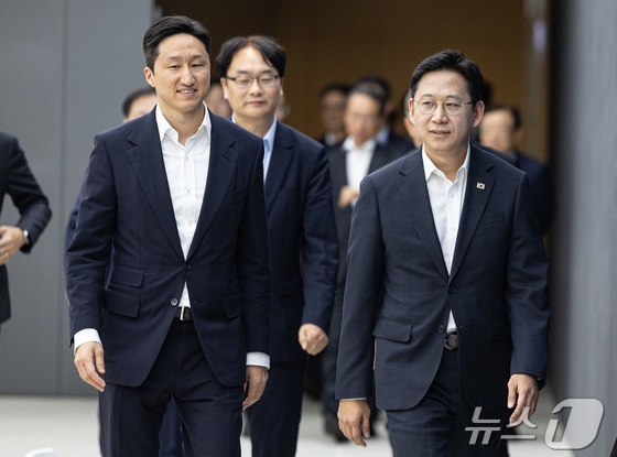배경훈 부총리 겸 과학기술정보통신부 장관오른쪽과 정기선 HD현대 회장이 20일 경기도 성남시 분당구 HD현대글로벌RD센터에서 열린 HD현대·U…