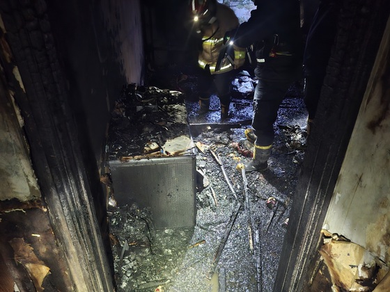 24일 서울 송파구 방이동의 한 아파트에서 발생한 화재로 실내가 까맣게 소실된 모습.2025.12.24/송파소방서 제공서울 송파구 방이동 올림픽…