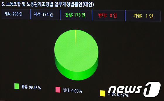 지난 2023년 11월 9일 서울 여의도 국회 본회의장에서 열린 제410회 국회정기회 제11차 본회의에서 국민의힘 의원들이 불참한 채 노동조합 및 노동…