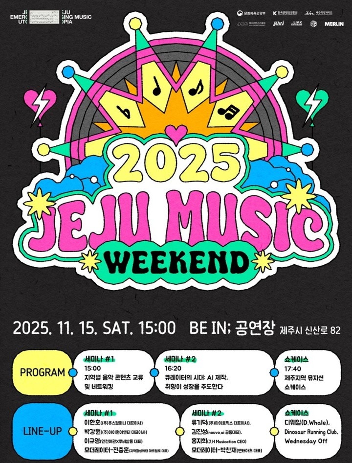 (MHN 김수안 인턴기자) 제주 지역 음악 확장을 위해 네트워킹 중심의 음악회가 개최된다. 제주특별자치도와 제주콘텐츠진흥원, 한국음악레이블산업협회가 함께하는 ‘2025 제주 뮤직