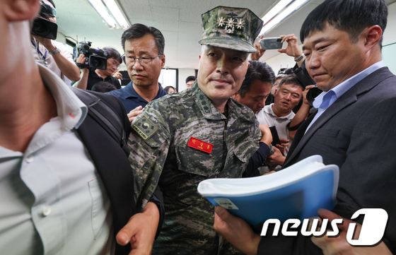 채 모 상병 순직 사건을 수사하다 항명 혐의로 입건된 박정훈 전 해병대 수사단장이 1일 서울 용산구 군사법원에서 열린 구속 전 피의자심문영장실질심사에 …