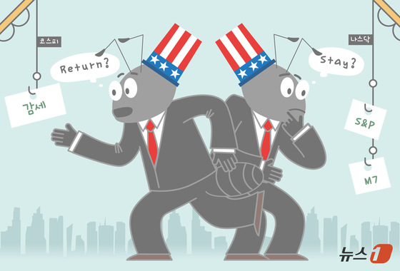 News1 김초희 디자이너정부가 해외 주식을 팔고 국내 증시로 돌아오는 투자자에게 양도소득세를 감면해 주기로 하면서, '서학개미'들의 고민이 깊어지고…