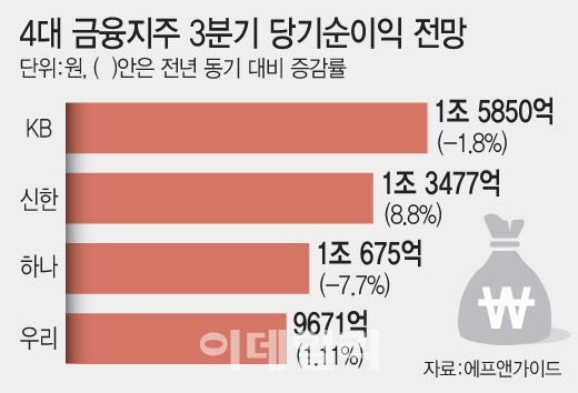 3분기 순익 5조 육박…4대 금융, '역대급 실적' 전망