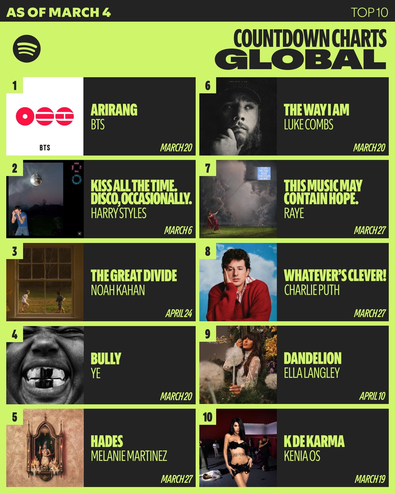 방탄소년단 ‘아리랑’, 스포티파이 프리세이브 400만 회 기록